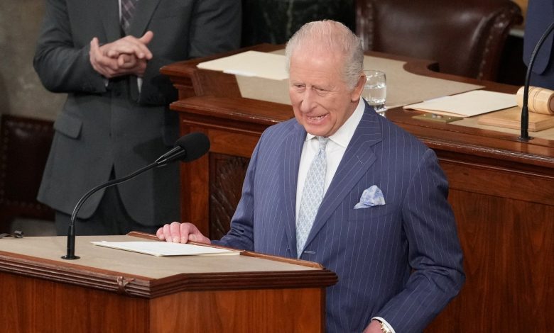 Rei Charles II da Inglaterra discursa no Congresso dos EUA em 28 de abril de 2026