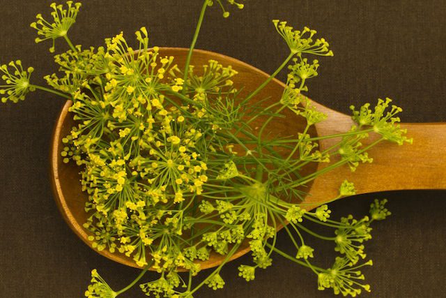 • 1 colher de chá (de 5 a 7 g) de sementes esmagadas ou folhas frescas de funcho.