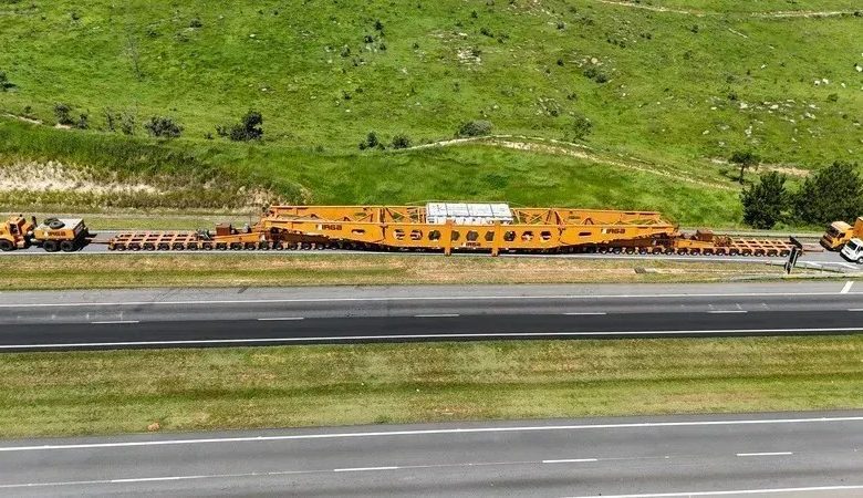 Para viabilizar o deslocamento, a empresa utilizou um conjunto transportador de cerca de 845 toneladas e aproximadamente 138 metros de comprimento, configurando um dos maiores comboios já registrados no estado para esse tipo de operação.
