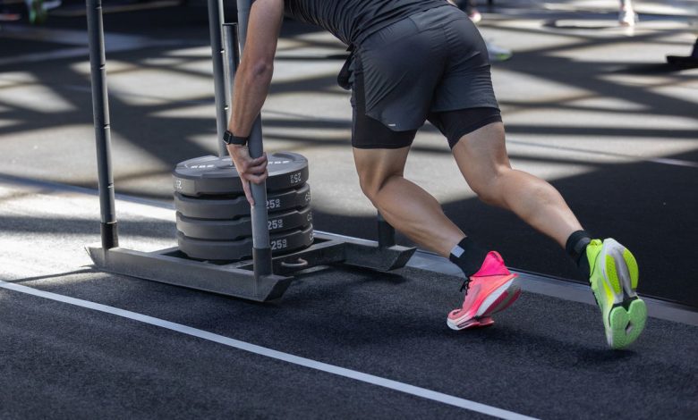 O sled push, ou empurrar o trenó, é realizado com um equipamento próprio, onde a carga pode ser ajustada de acordo com o nível de quem treina.