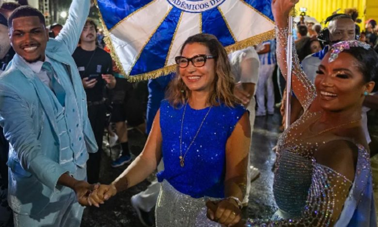 A primeira-dama Janja Lula da Silva participou do ensaio técnico da Acadêmicos de Niterói, dançando e interagindo com apoiadores