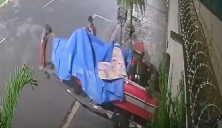 Imagens mostram ladrões invadindo garagem e levando lancha