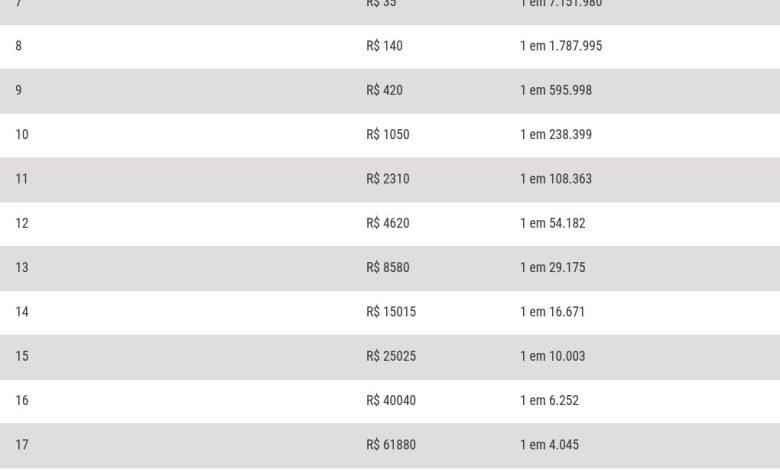 O prêmio bruto corresponde a 43,35% da arrecadação. Dessa porcentagem: