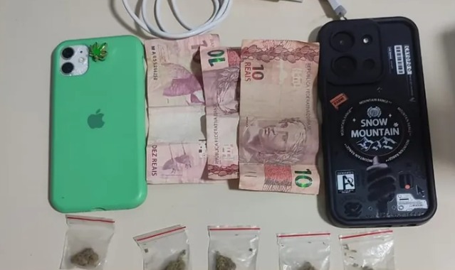 Com os envolvidos, foram apreendidas 20 buchas de maconha, R$ 30 em dinheiro, uma carteira de identidade e dois aparelhos celulares, sendo um iPhone e um Poco. Todo o material foi apresentado à autoridade policial.