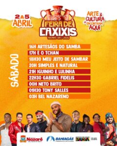 Além dos shows, a Feira de Caxixis segue reunindo cultura, tradição e artesanato, consolidando Nazaré como um dos principais destinos do Recôncavo baiano durante o período festivo.